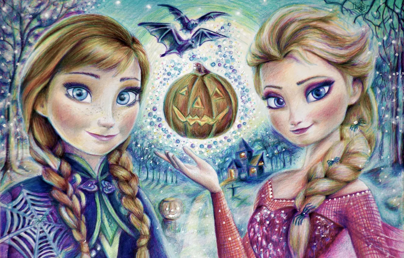Девушка, halloween, тыква, frozen, хэллоуин, anna, art, elsa обои на телефон (фото, картинки)