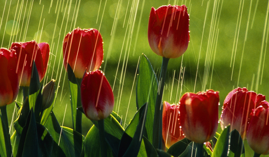 Назад к обои зелень, лето, солнце, дождь, тюльпаны, красные тюльпаны