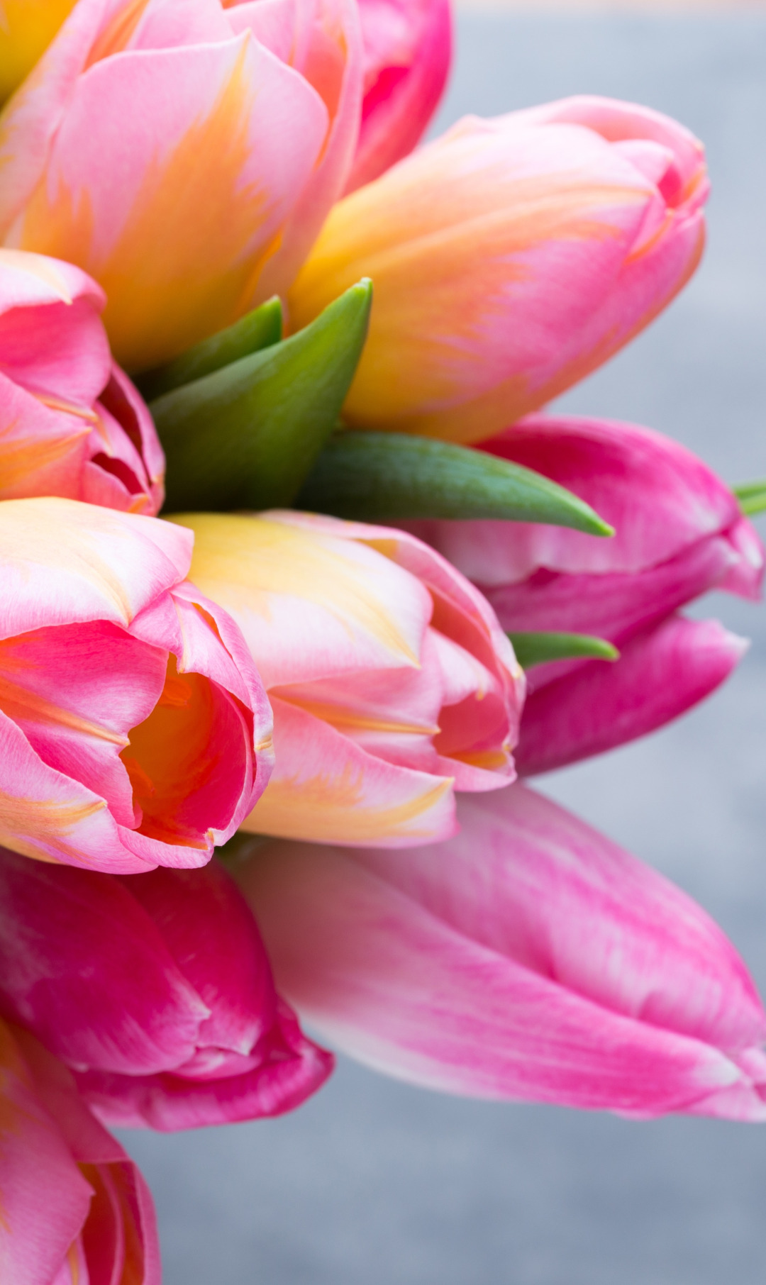 Назад к обои листья, крупный план, отражение, фон, тюльпаны, бутоны, боке