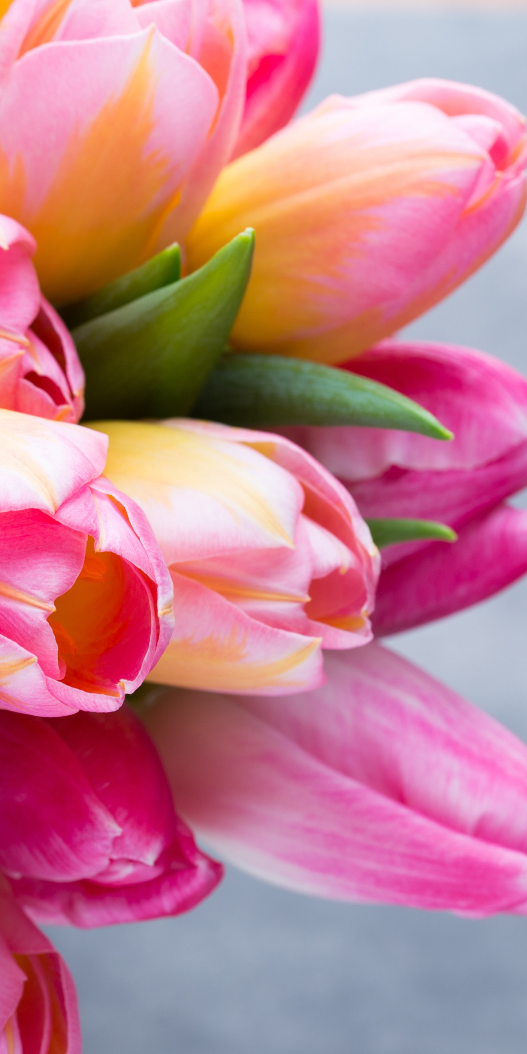 Назад к обои листья, крупный план, отражение, фон, тюльпаны, бутоны, боке