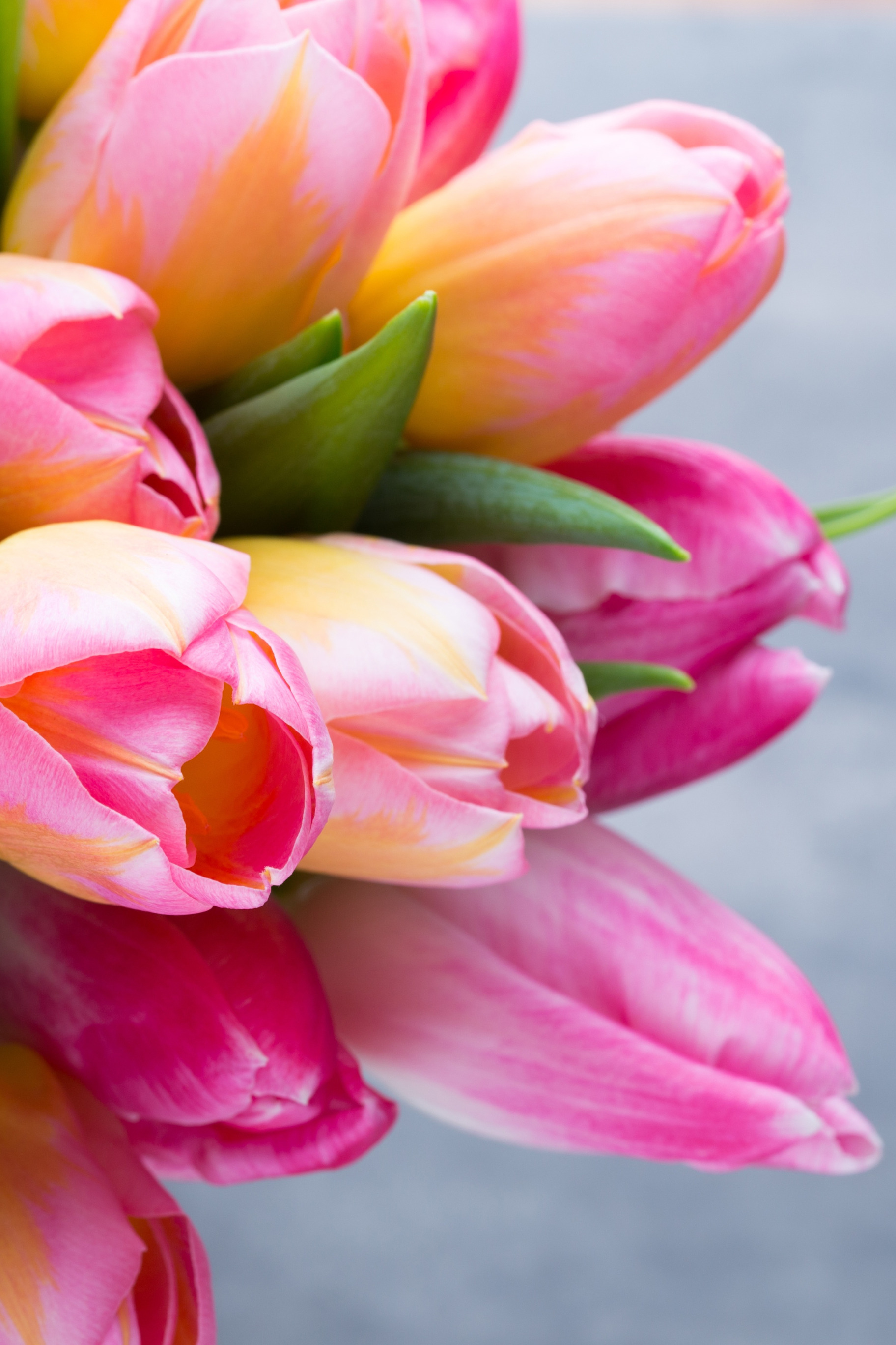 Назад к обои листья, крупный план, отражение, фон, тюльпаны, бутоны, боке