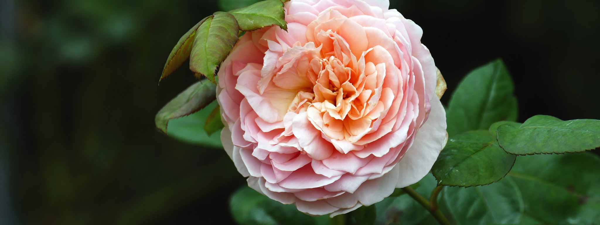 листья, темный фон, розы, сад, бутоны, пышная, персиковый