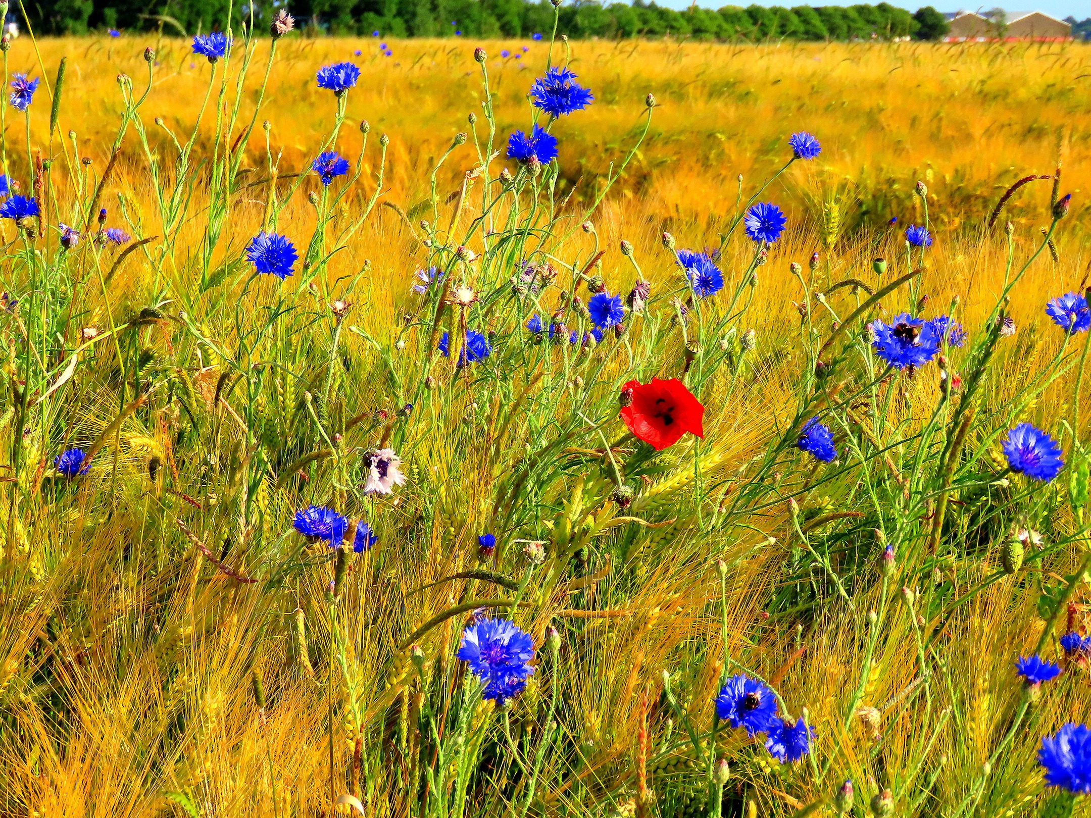 поле, цветы, рожь, маки, колосья, злаки, полевые, васильки