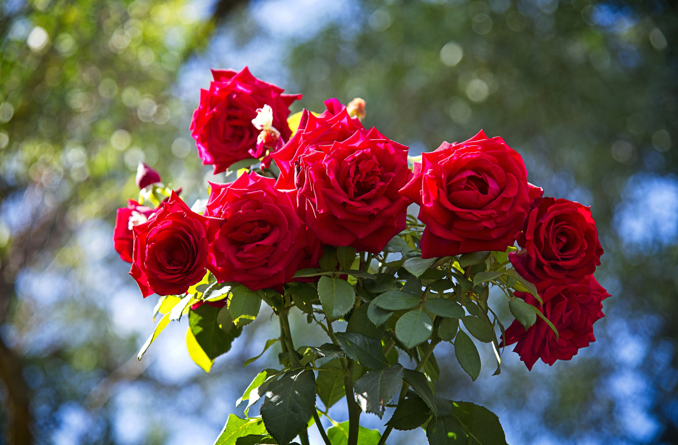 листья, свет, цветы, красный, фон, яркие, розы, букет