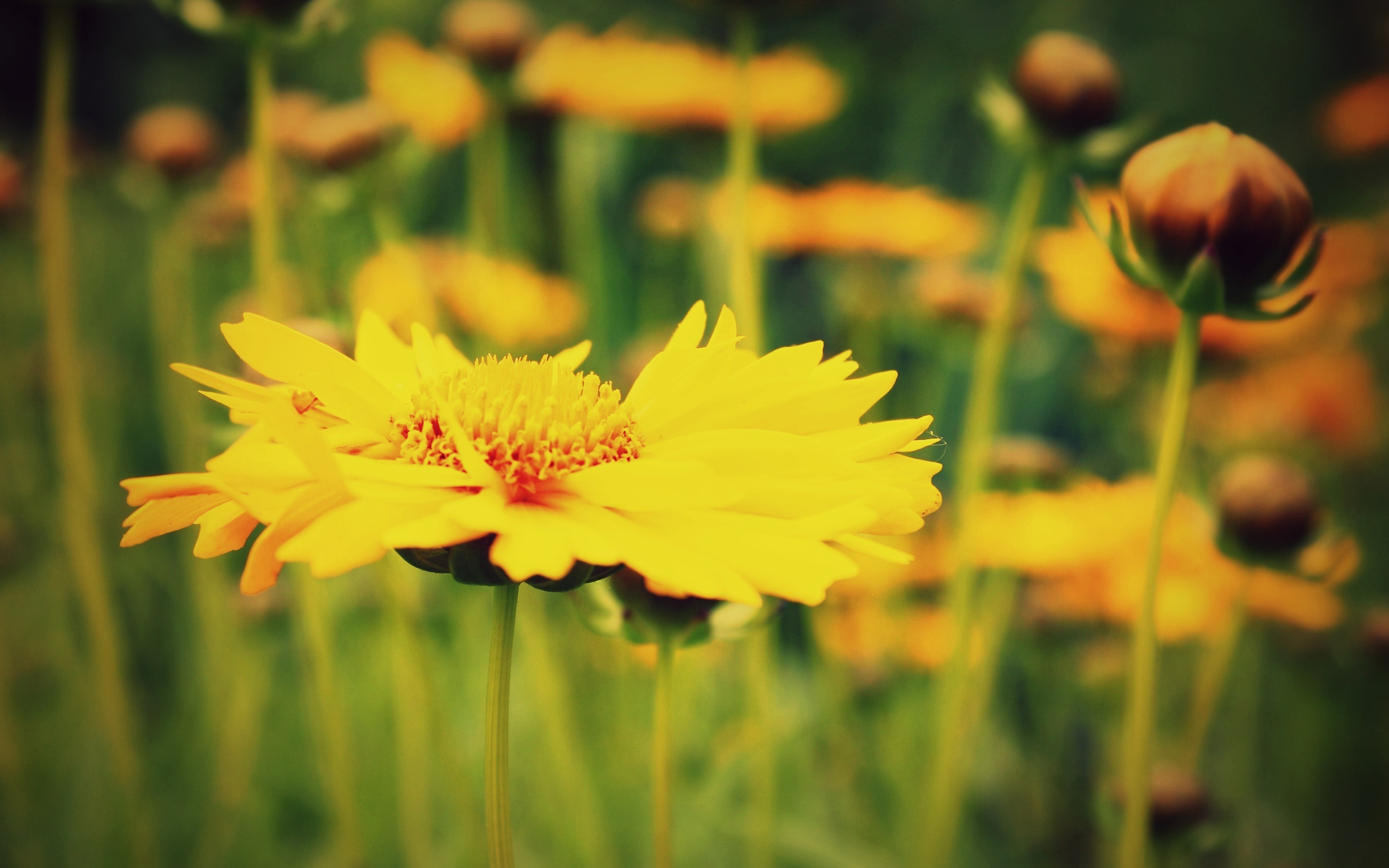 макро, цветы, желтый, зеленый, фон, widescreen, обои, размытие