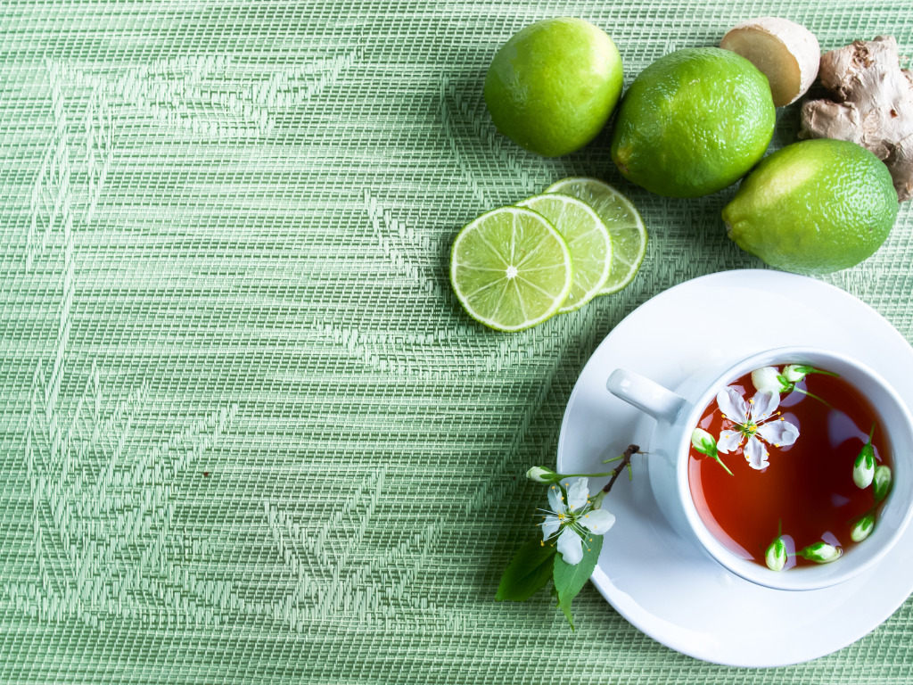 Назад к обои белый, цветы, стол, чай, чашка, лайм, напиток, фрукты