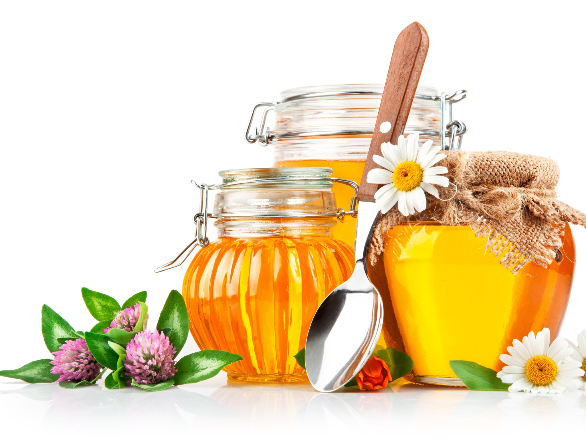 Назад к обои цветы, ромашки, мед, баночки, ложка, белый фон, honey