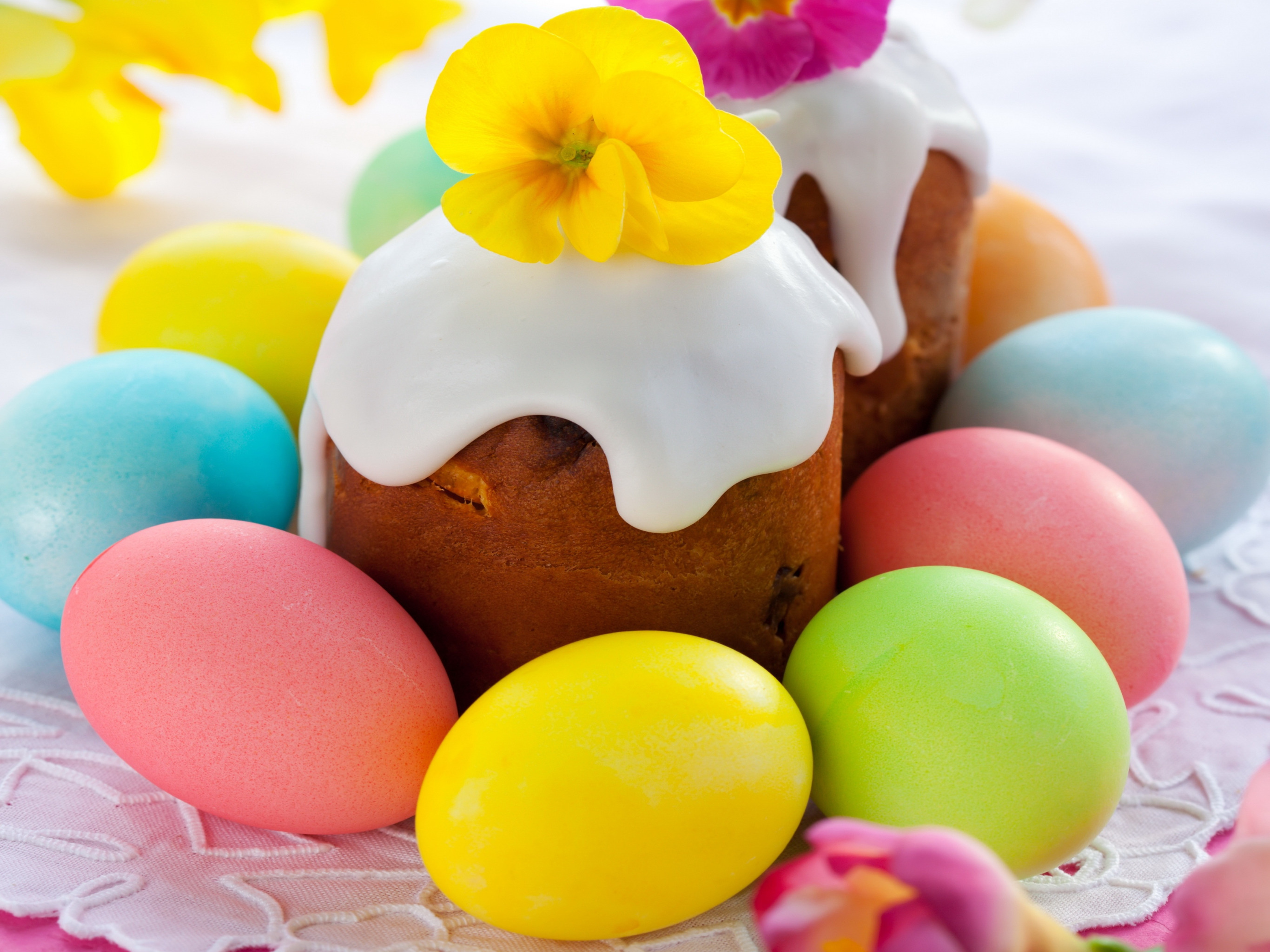 Назад к обои яйца, Пасха, cake, кулич, flowers, выпечка, глазурь, spring