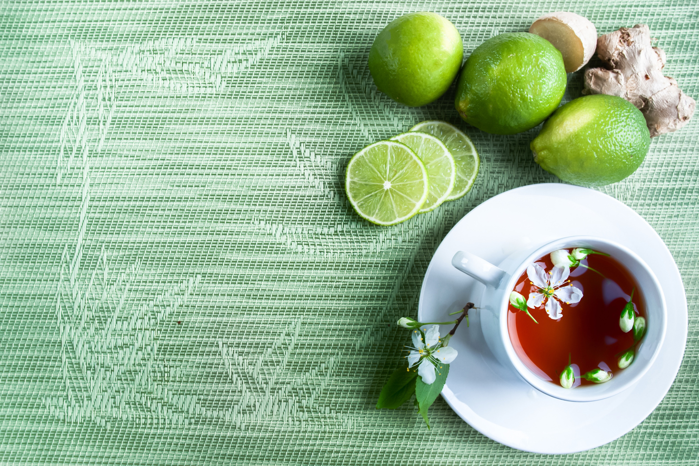 Назад к обои белый, цветы, стол, чай, чашка, лайм, напиток, фрукты