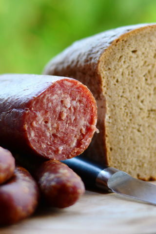 Назад к обои хлеб, нож, колбаса
