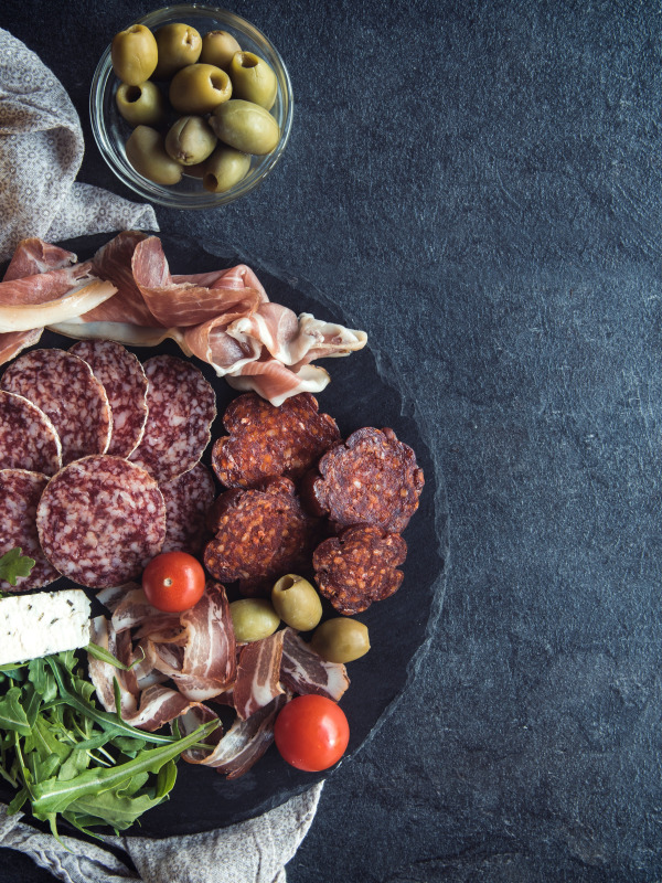 тарелка, хлеб, оливки, колбаса, бекон, bread, cheese, meat