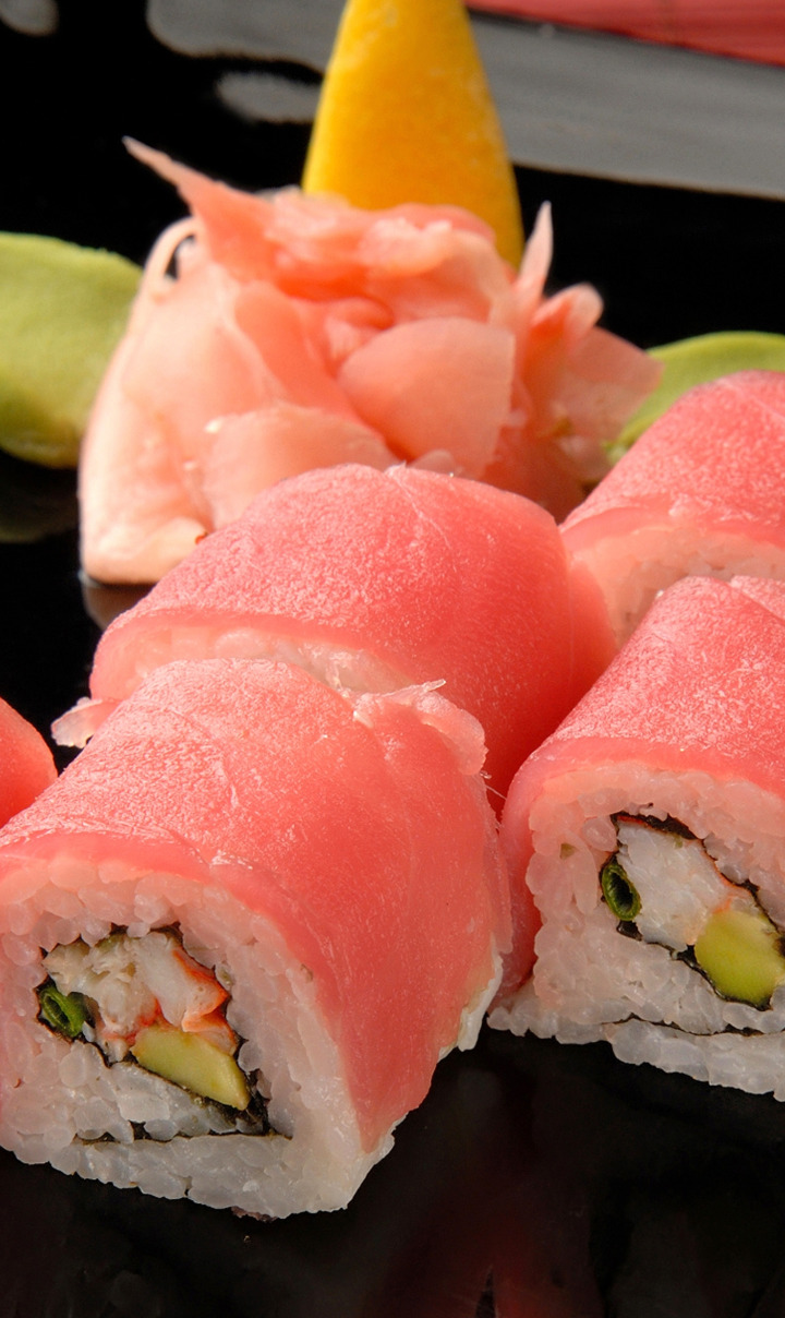 Назад к обои черный, тарелка, рис, капуста, суши, роллы, васаби