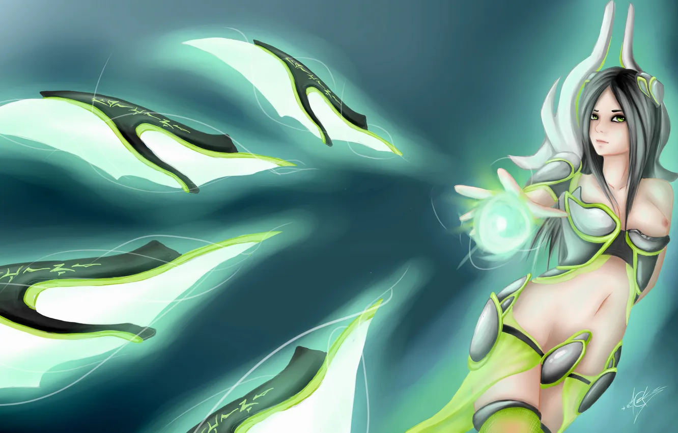 Грудь, взгляд, девушка, оружие, магия, art, league of legends, irelia обои на телефон (фото, картинки)