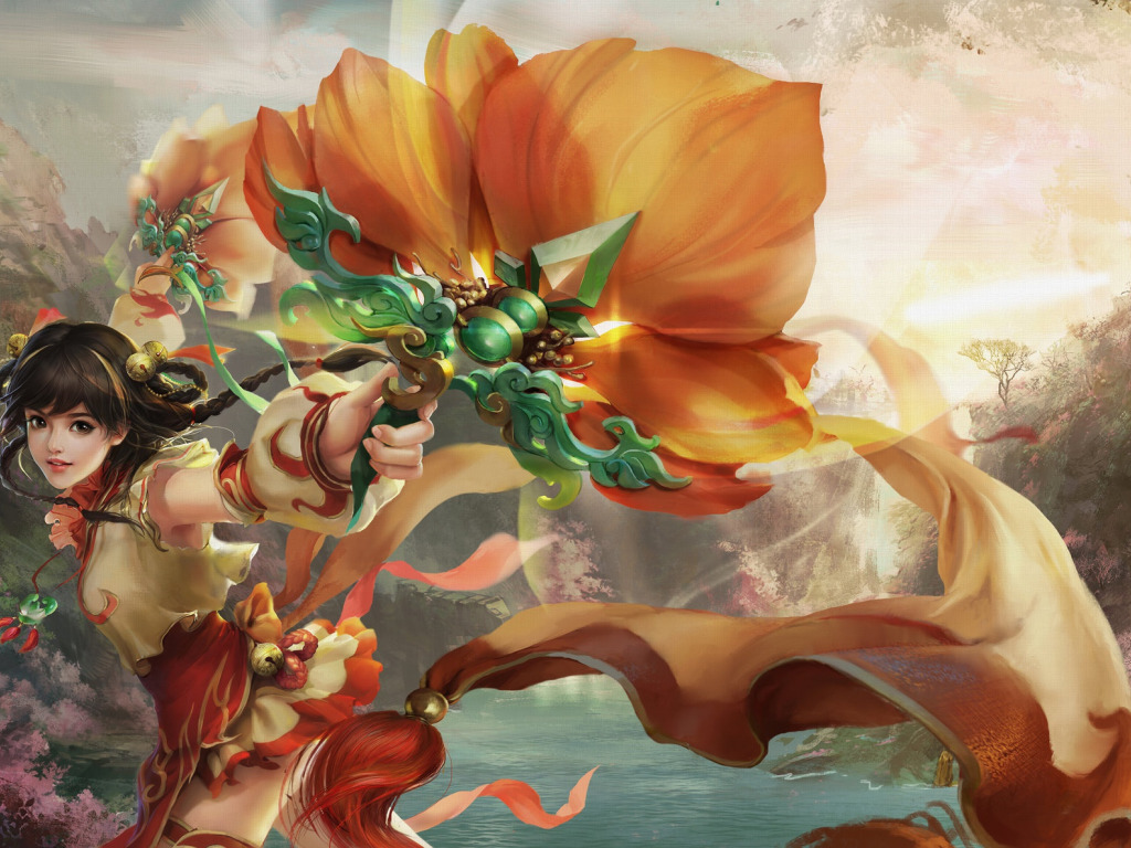 Назад к обои девушка, оружие, игра, арт, fantasy, game, арбалет, Moky lin