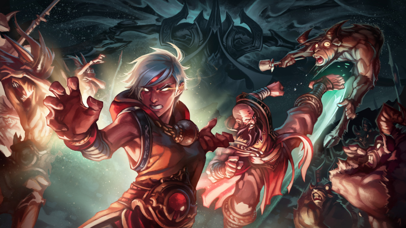 Назад к обои девушка, Diablo 3, белые волосы, monk