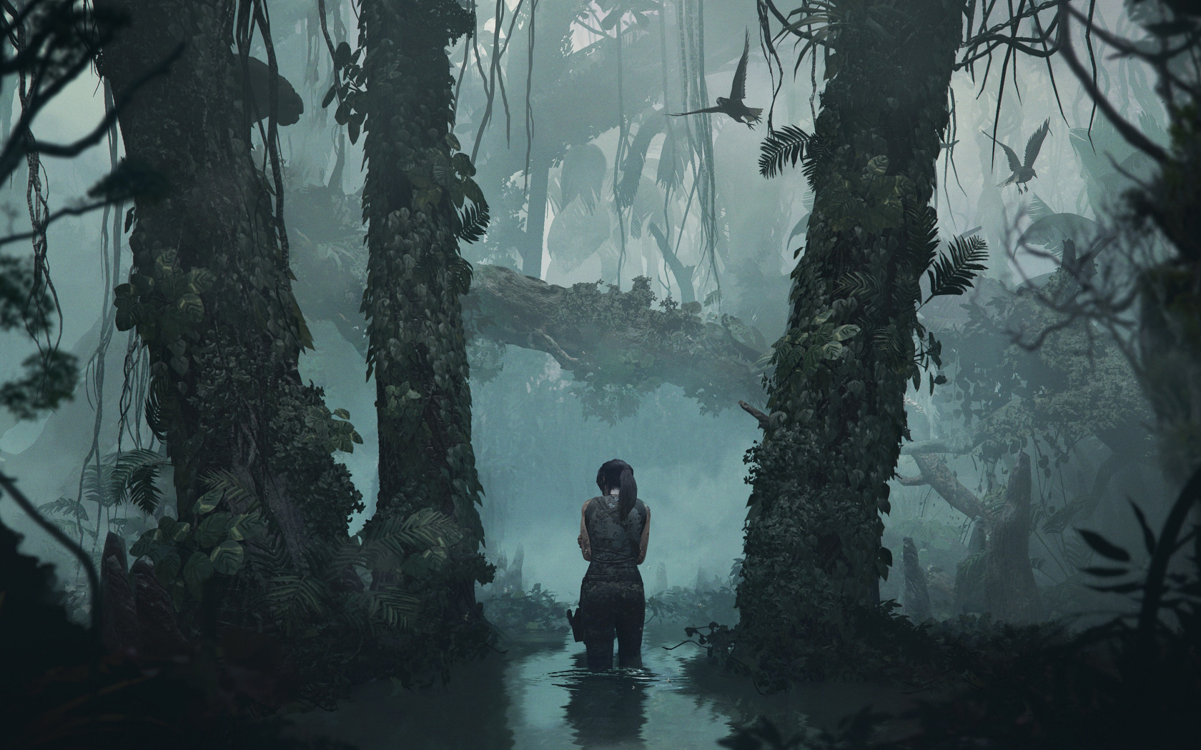 Назад к обои вода, девушка, деревья, отражение, птица, джунгли, Square Enix, Lara Croft