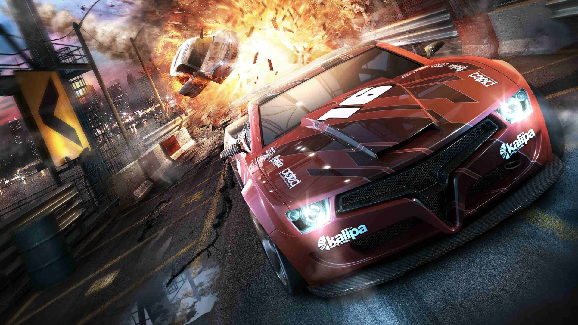 Назад к обои взрыв, скорость, Split/Second, красная машина, Драйв