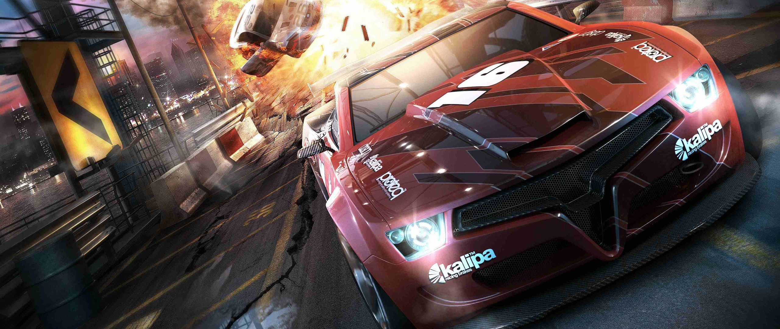 Назад к обои взрыв, скорость, Split/Second, красная машина, Драйв
