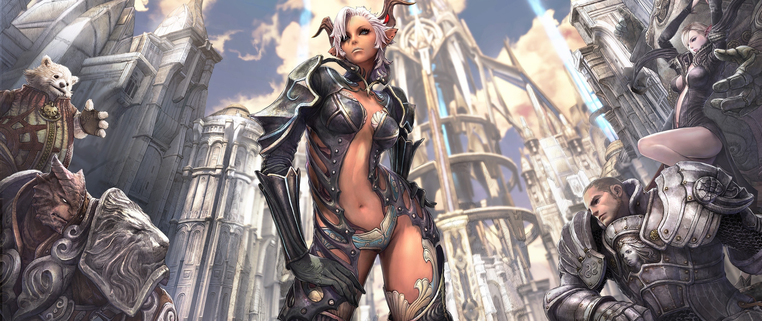 Назад к обои девушка, облака, город, магия, доспехи, воин, рога, tera