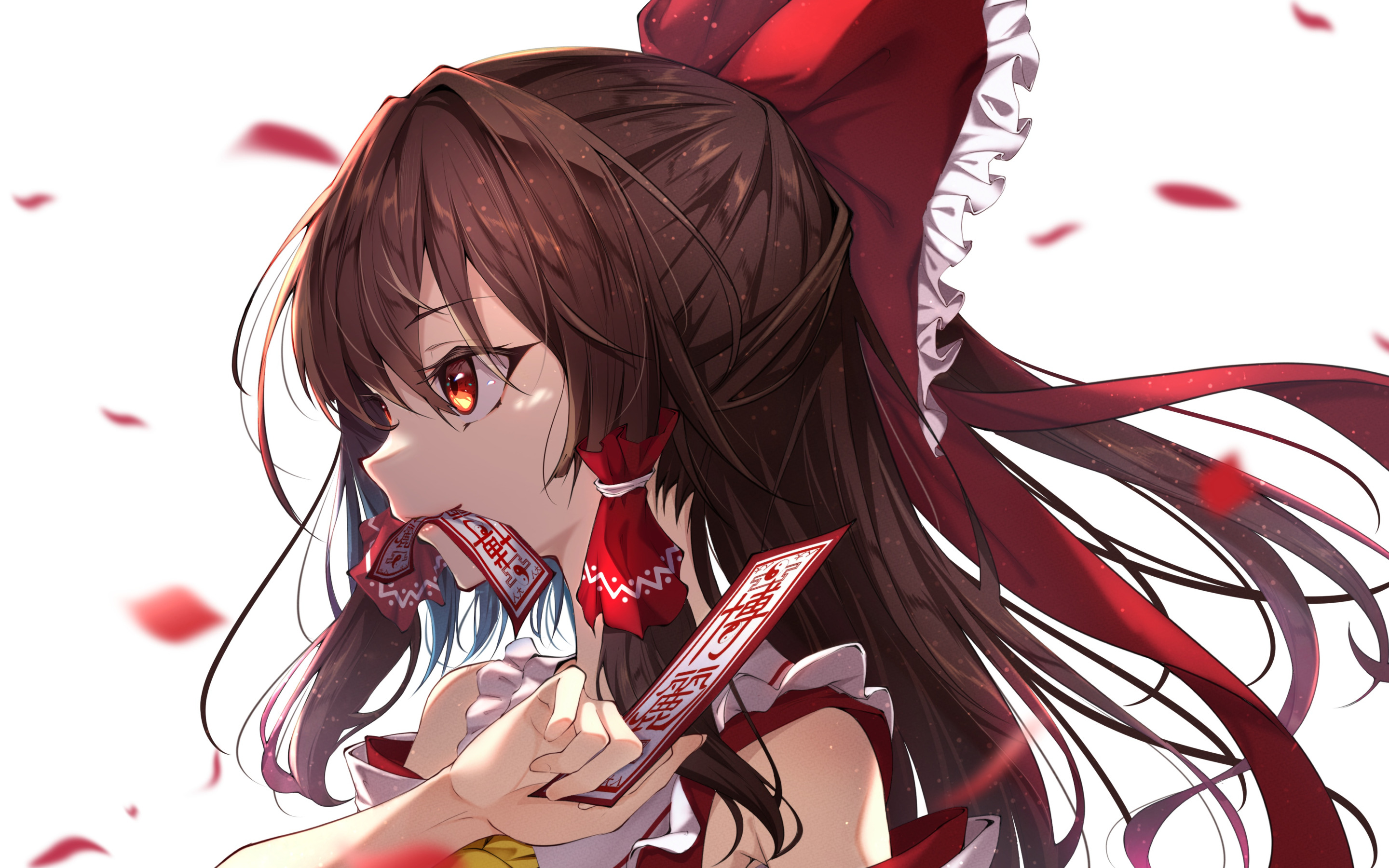 Назад к обои девушка, лепестки, Touhou Project, Reimu Hakurei, офуда