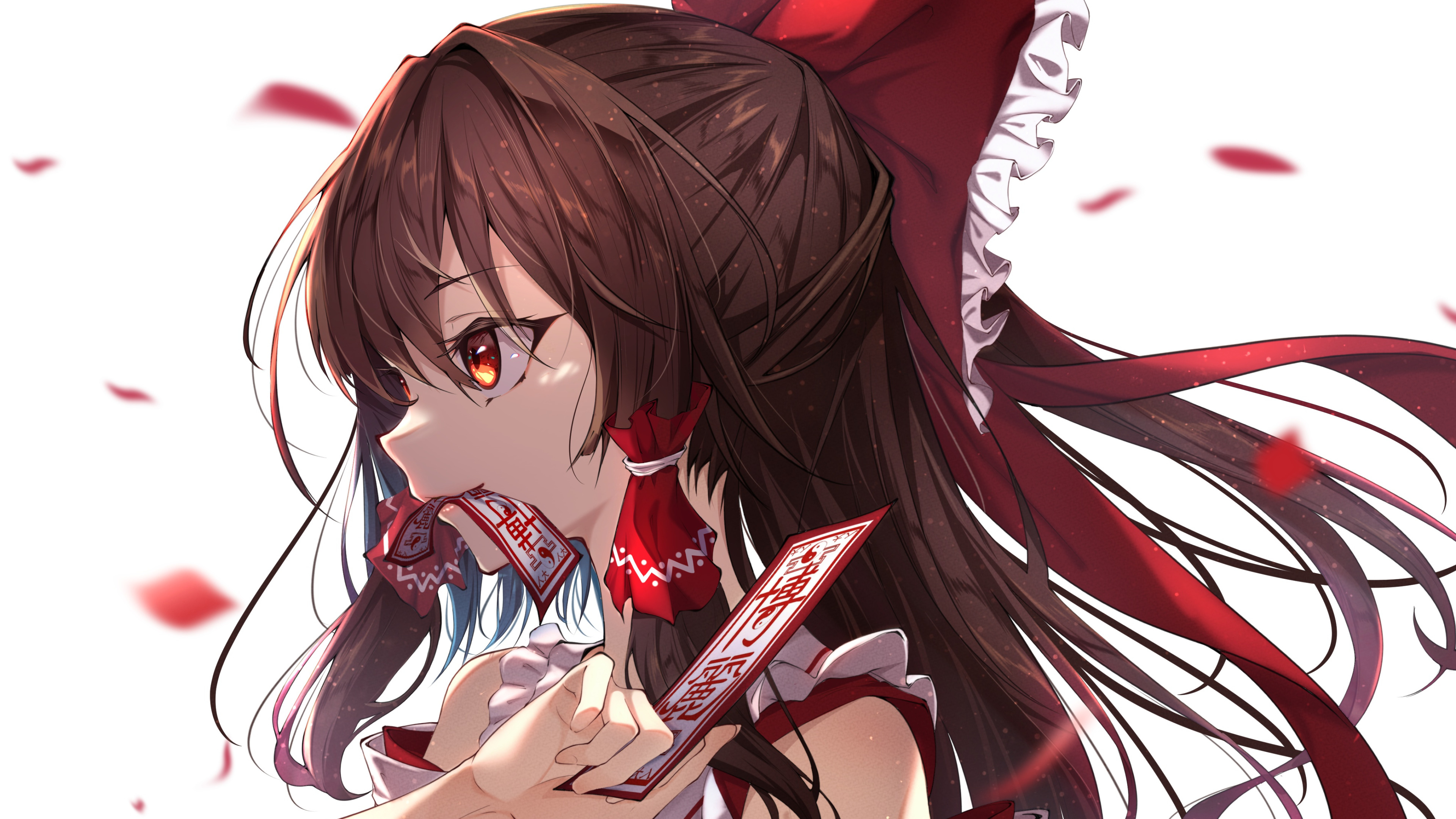 девушка, лепестки, Touhou Project, Reimu Hakurei, офуда