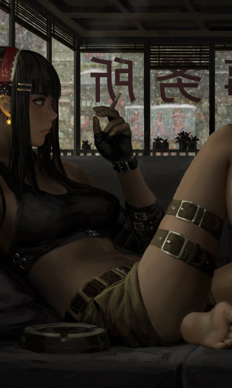 Назад к обои long hair, snow, digital art, plants, Christmas tree, belt, cigarettes, Guweiz