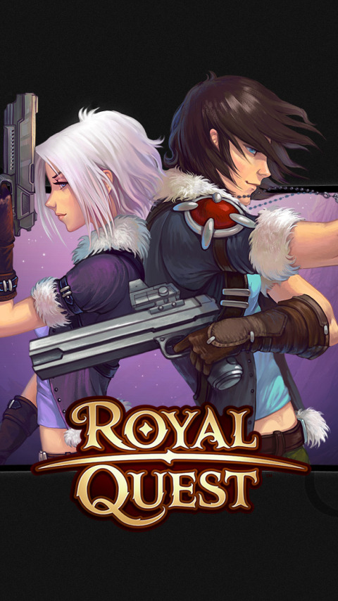 девушка, пистолет, оружие, надпись, парень, MMORPG, Royal Quest