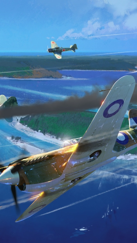 Назад к обои огни, стрельба, Mitsubishi, американский, японский, мицубиси, Зеро, Curtiss
