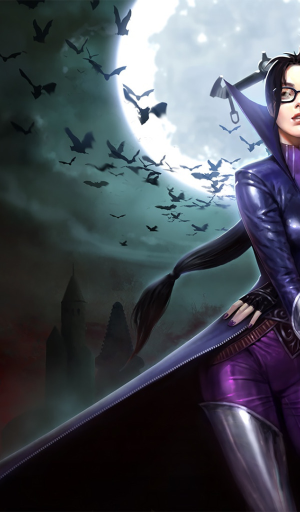 Назад к обои взгляд, птица, арт, плащ, полнолуние, splash, League of Legends, арбалет