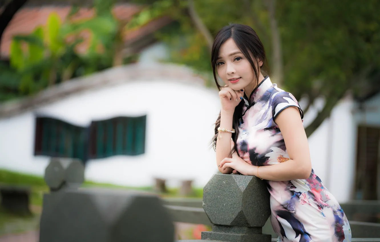 Девушка, платье, азиатка, боке обои на телефон (фото, картинки)