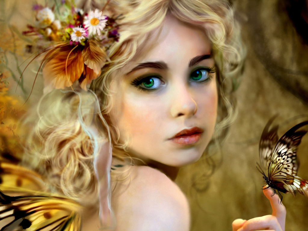 Назад к обои девушка, бабочка, рисунок