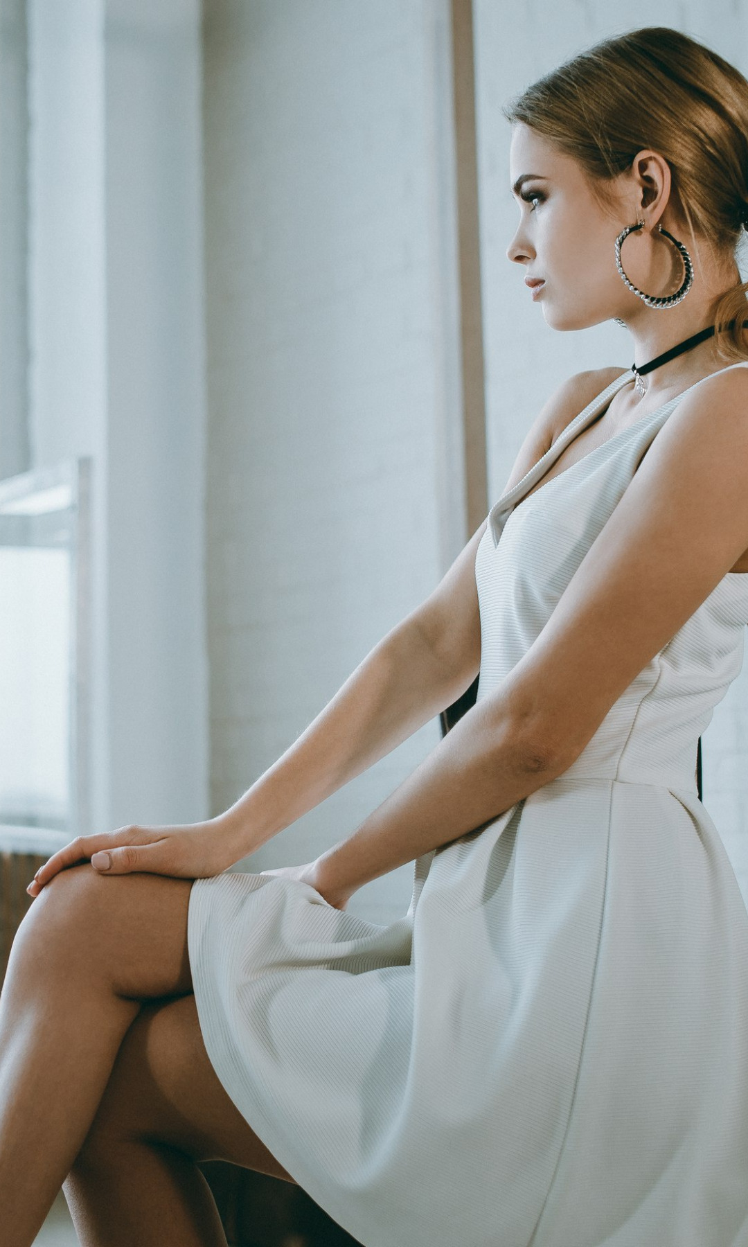 попа, взгляд, девушка, поза, волосы, платье, блондинка, ножки