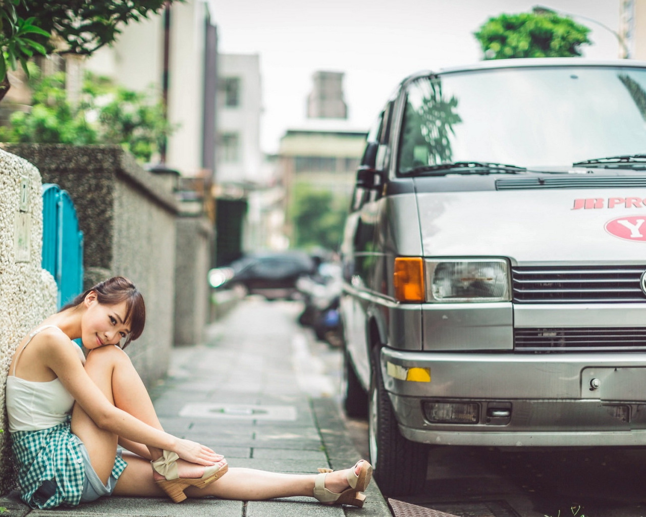 Назад к обои девушка, поза, улица, азиатка