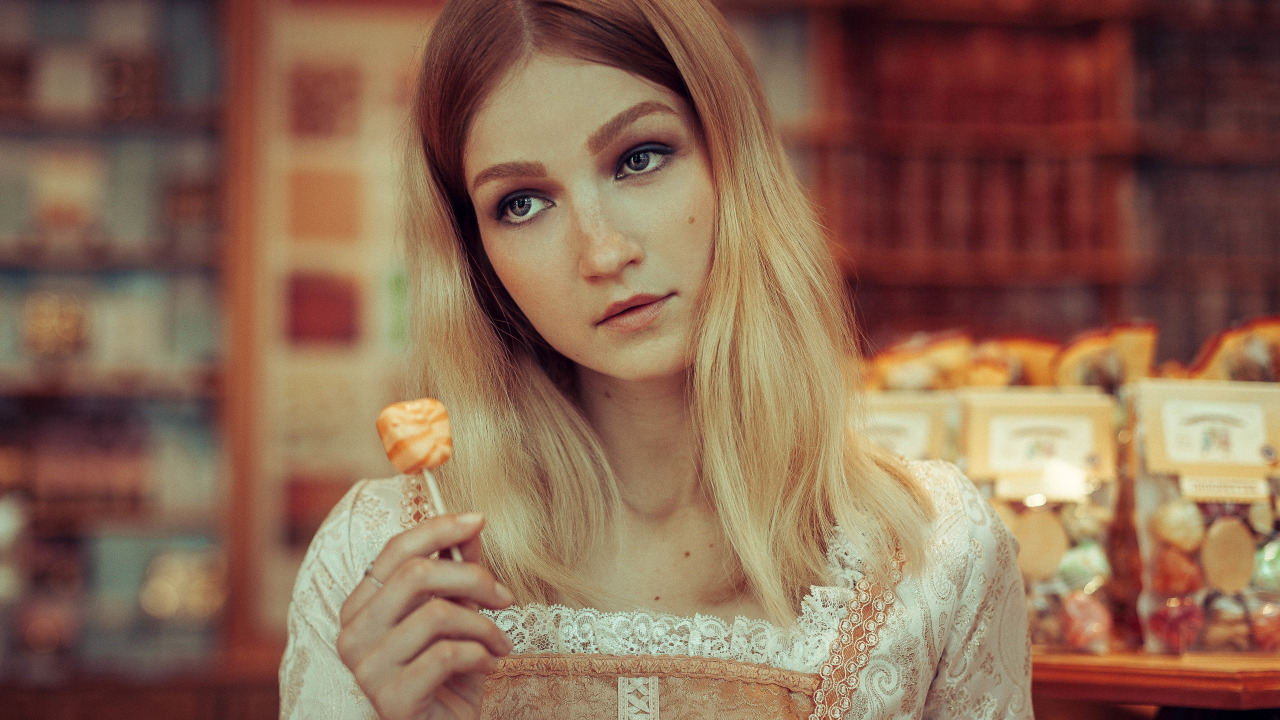 Назад к обои девушка, лицо, фон, волосы, конфеты