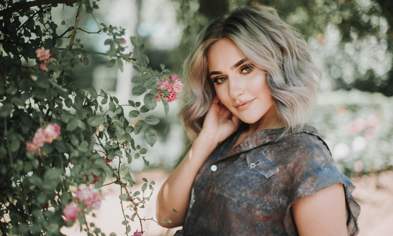 Назад к обои девушка, цветы, улыбка, кусты