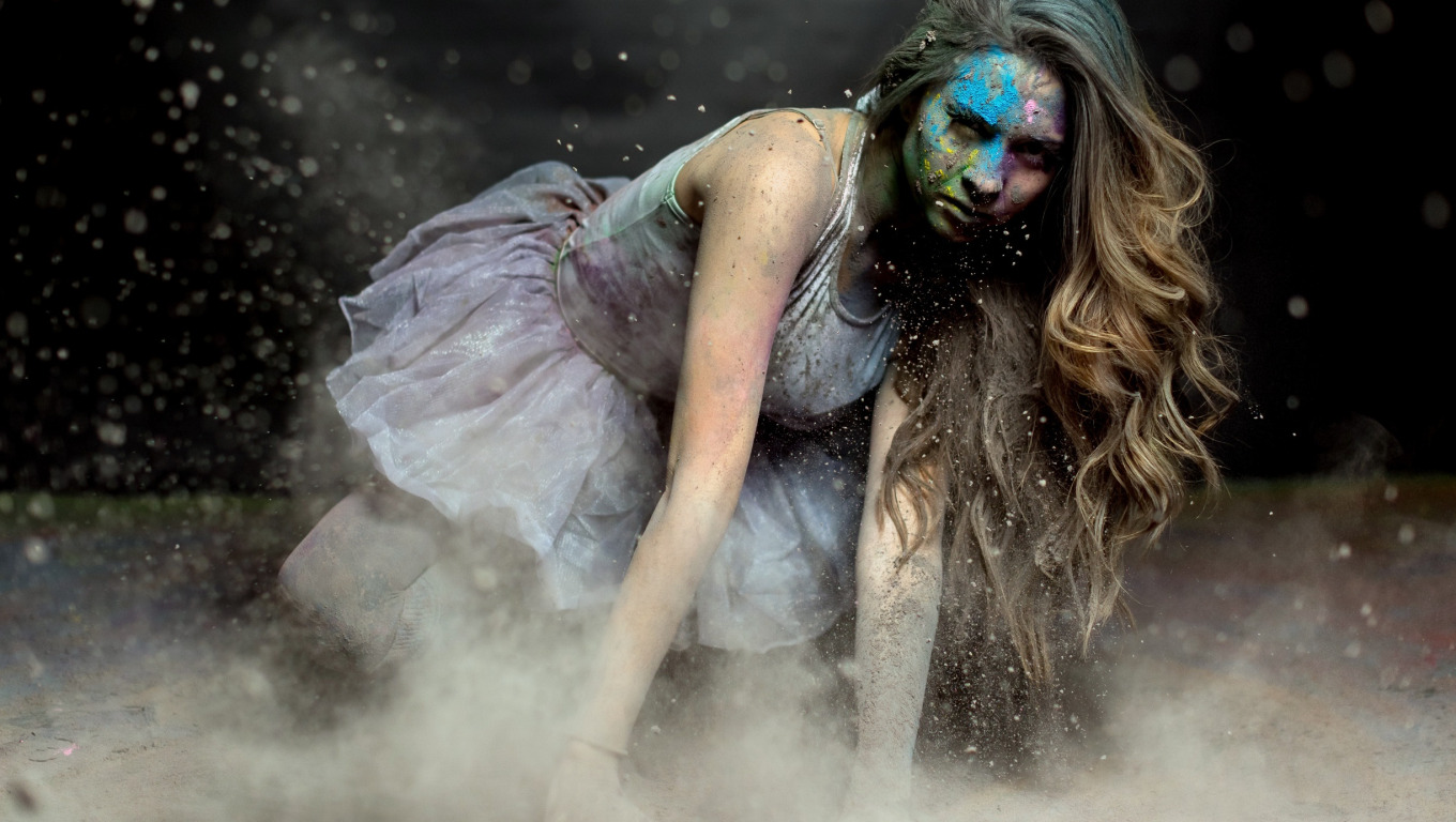 Назад к обои девушка, краски, пыль