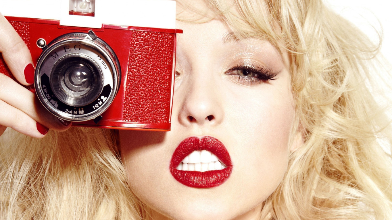 Назад к обои девушка, камера, блондинка, снимает, маникюр, красные губы