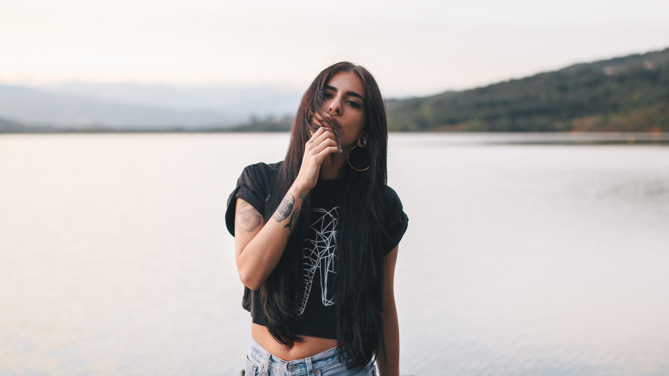 Назад к обои взгляд, девушка, природа, лицо, волосы