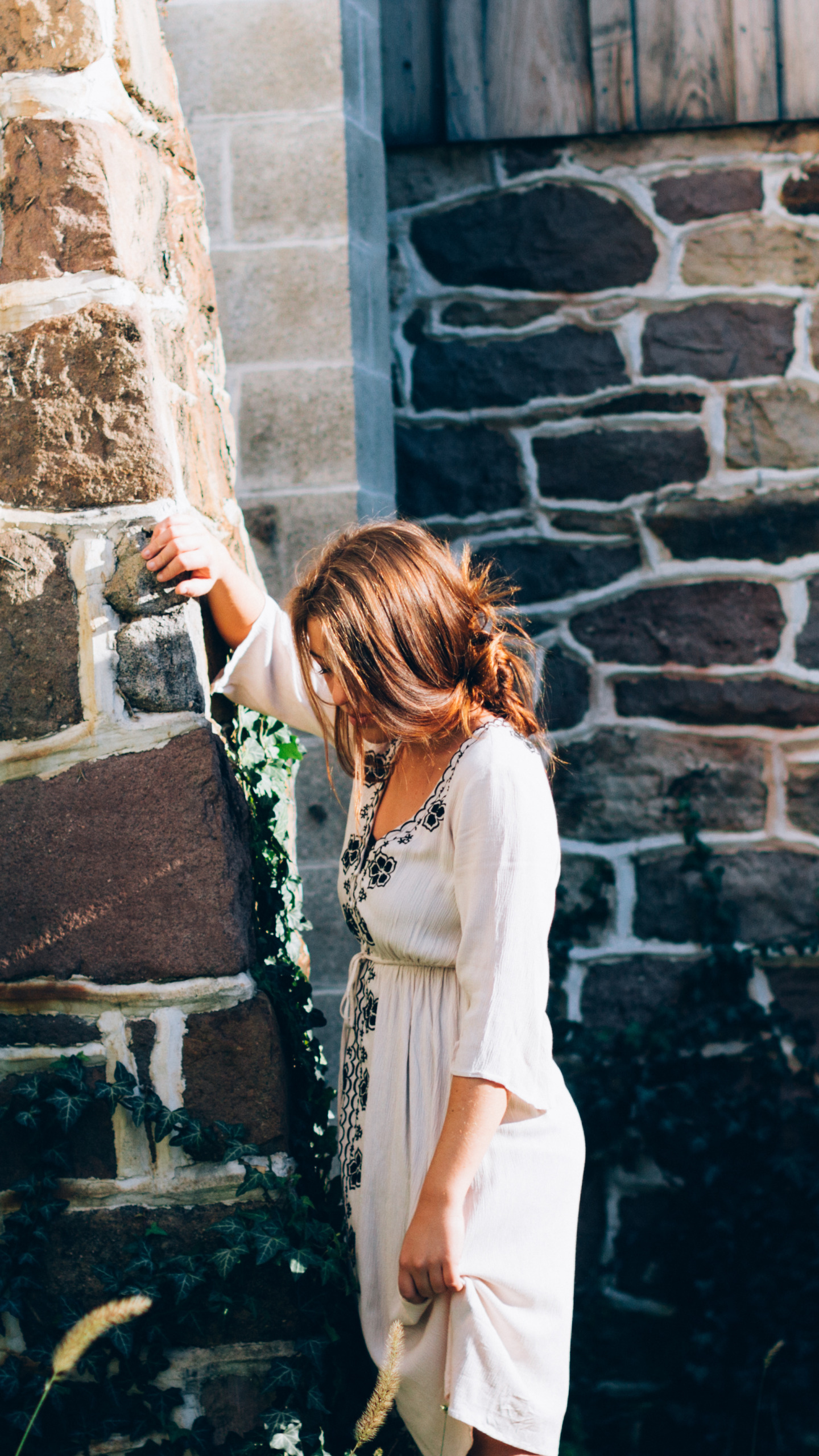 девушка, стена, платье