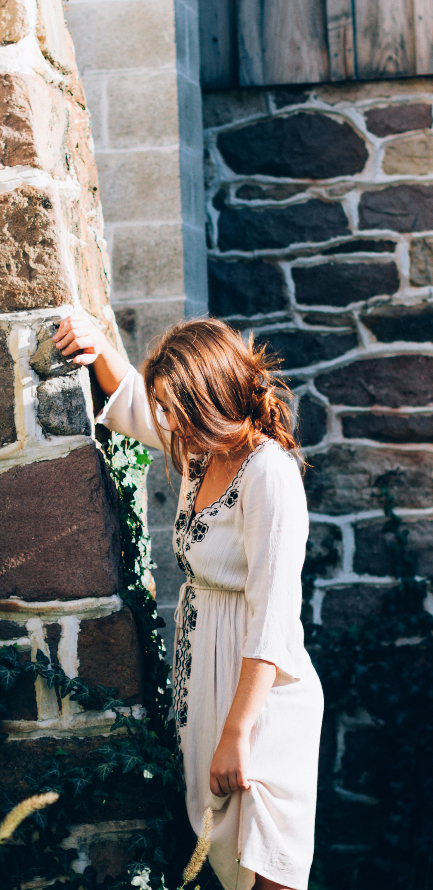 девушка, стена, платье
