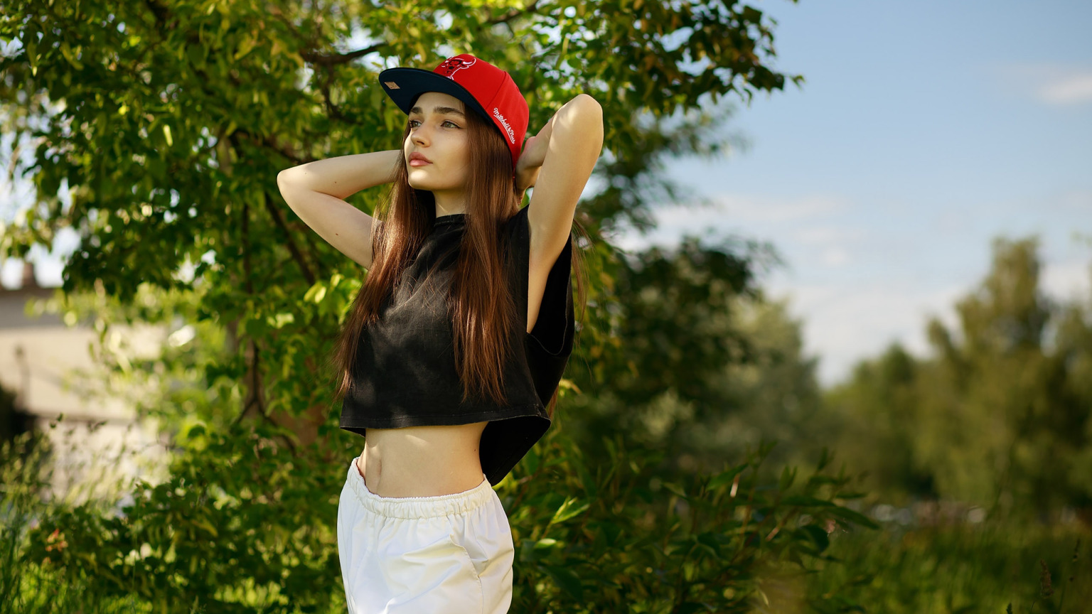 девушка, поза, фигура, кепка, бейсболка, длинные волосы, на природе, Игорь Куприянов