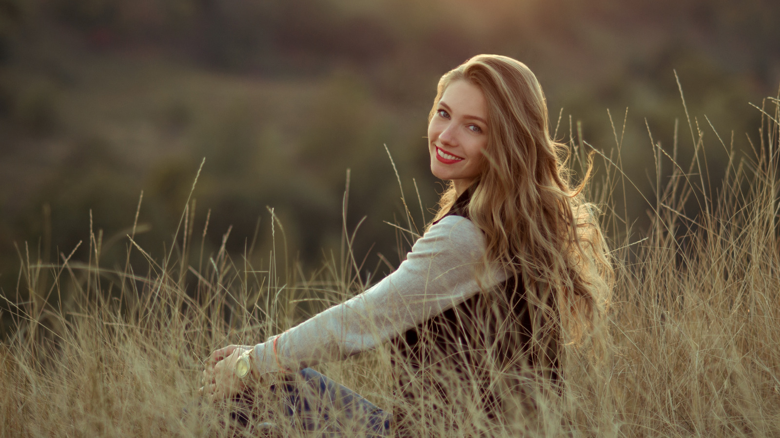 Назад к обои поле, девушка, природа, улыбка