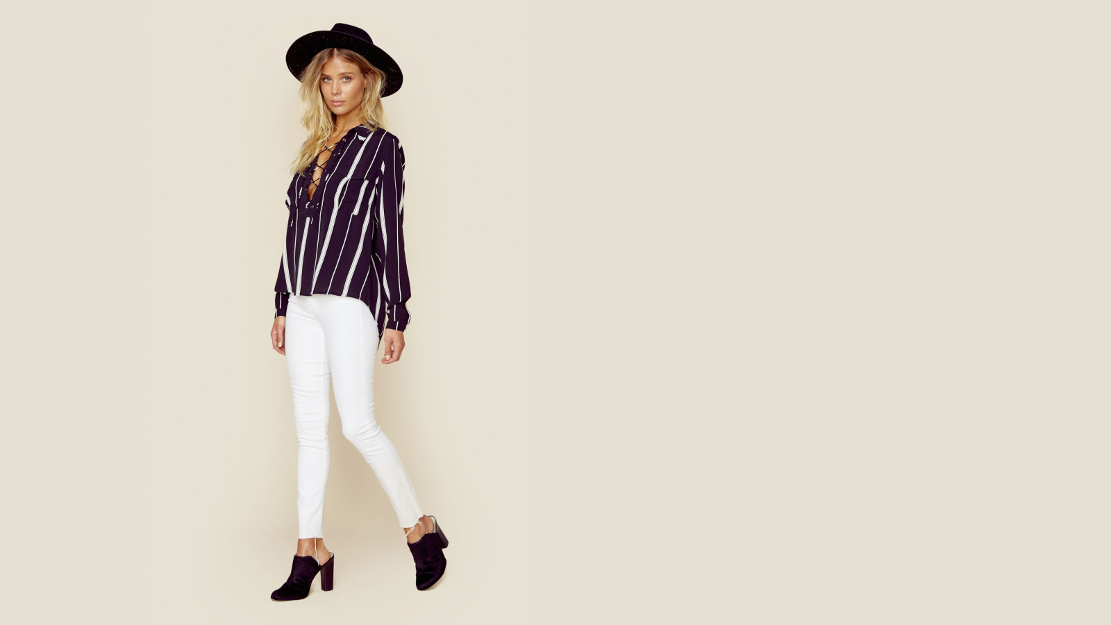 Назад к обои girl, hat, woman, young, model, jeans, blonde, tanned