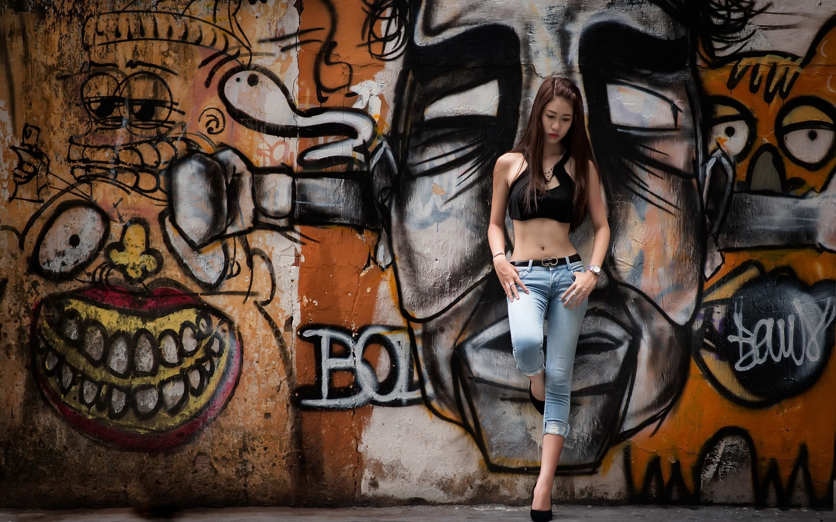 Назад к обои девушка, улица, граффити