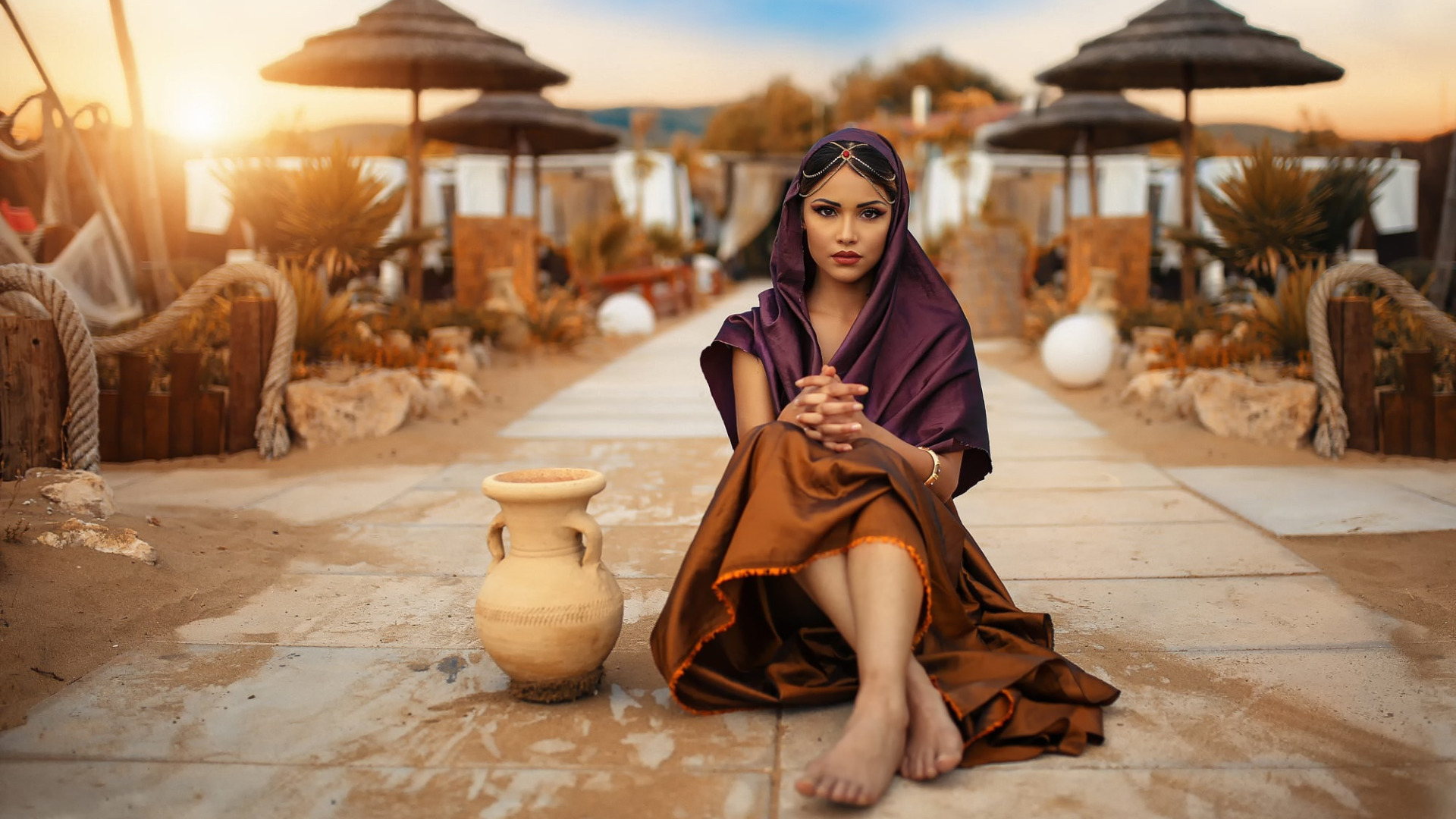 Назад к обои макияж, кувшин, прелесть, Alessandro Di Cicco, арабская девушка
