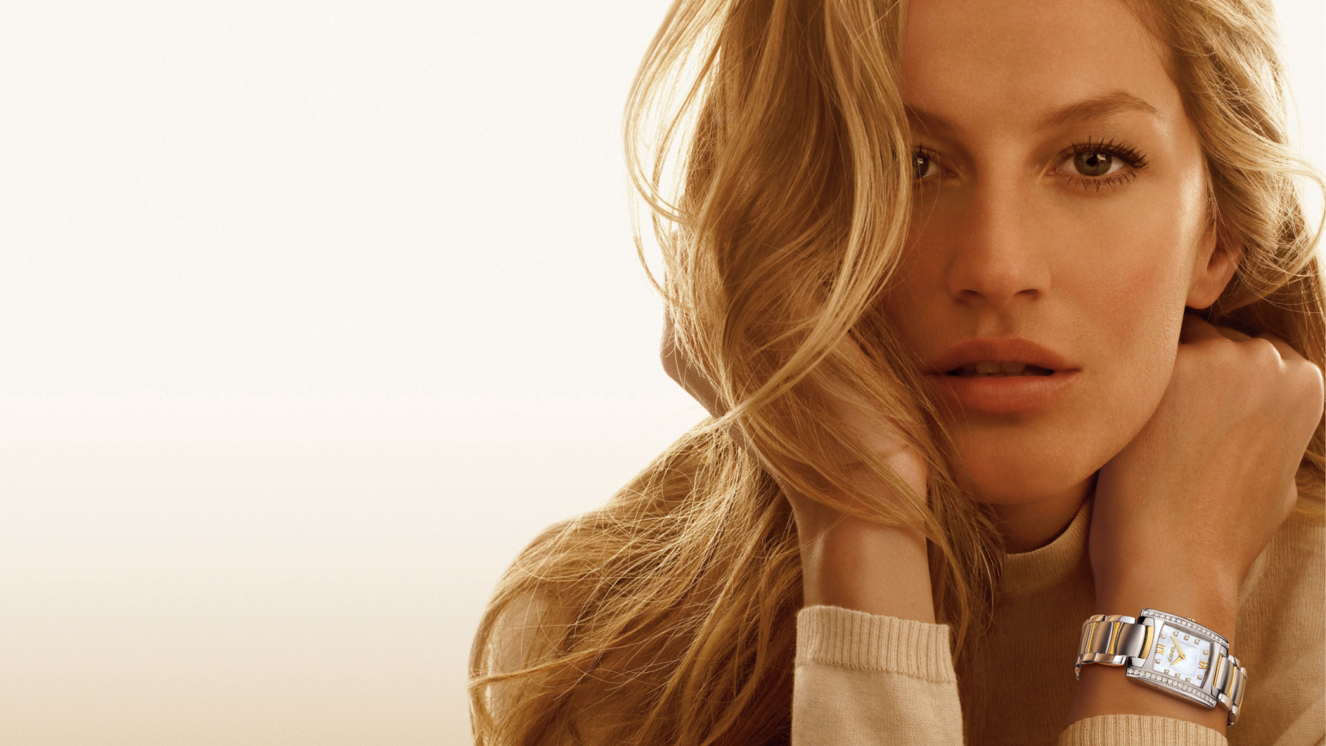 Назад к обои взгляд, модель, часы, блондинка, Gisele Bundchen