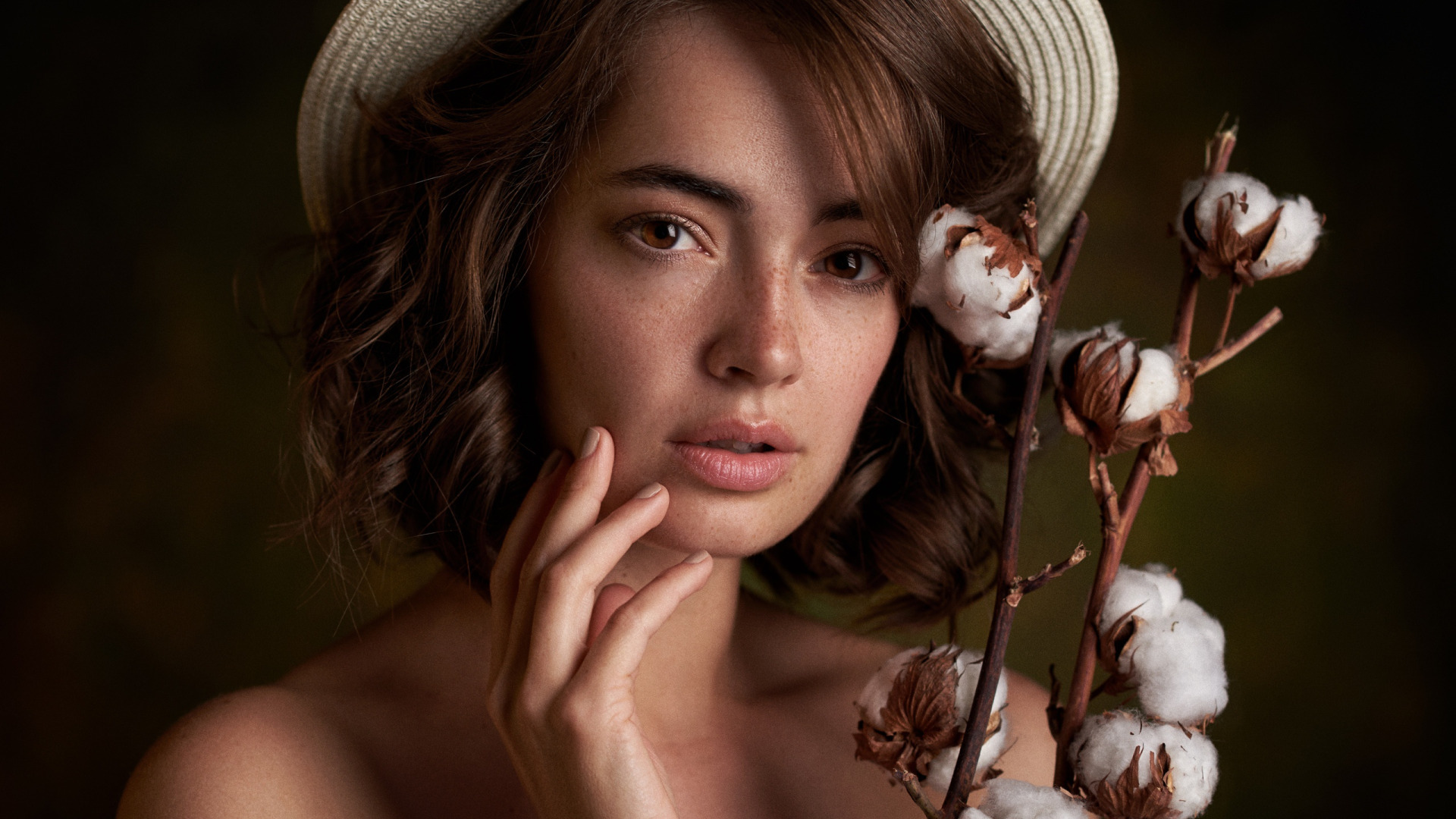 взгляд, девушка, ветки, лицо, фон, портрет, руки, хлопок