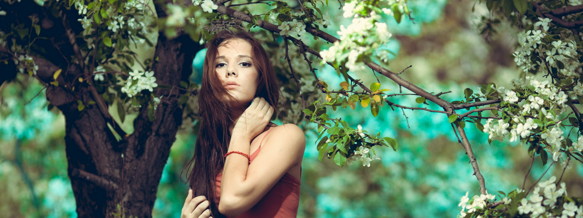 Назад к обои девушка, деревья, сад