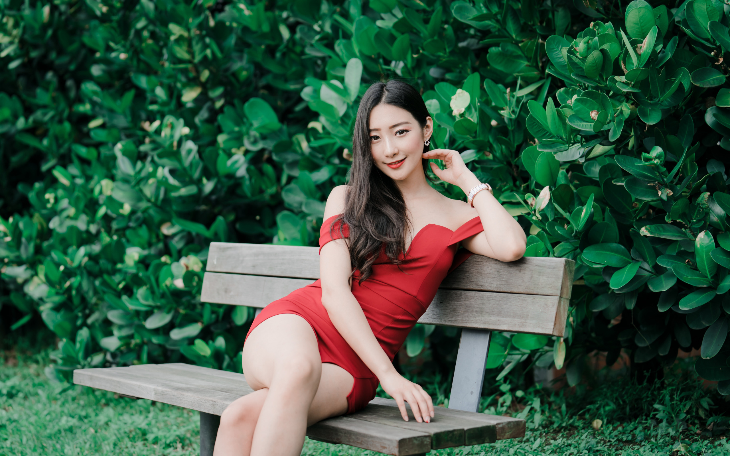 Назад к обои взгляд, улыбка, милая, волосы, платье, брюнетка, азиатка, бедра