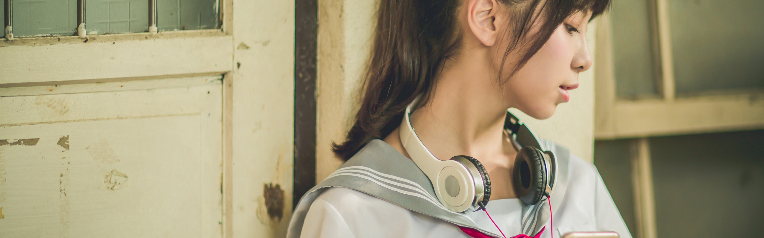 Назад к обои девушка, наушники, телефон, азиатка